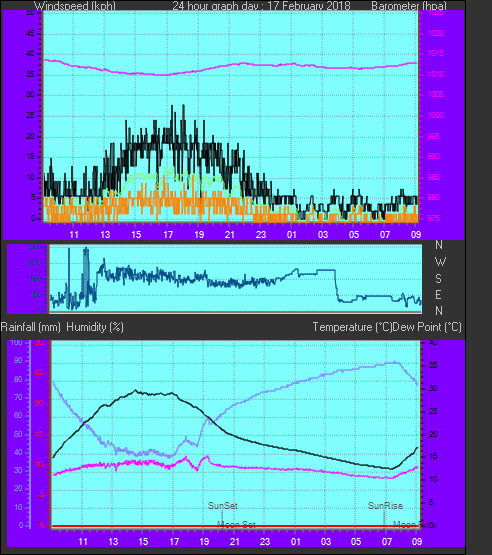 Maximum windspeed = 33.3 kmh from 00°( N ) on day 28 at time 10:13